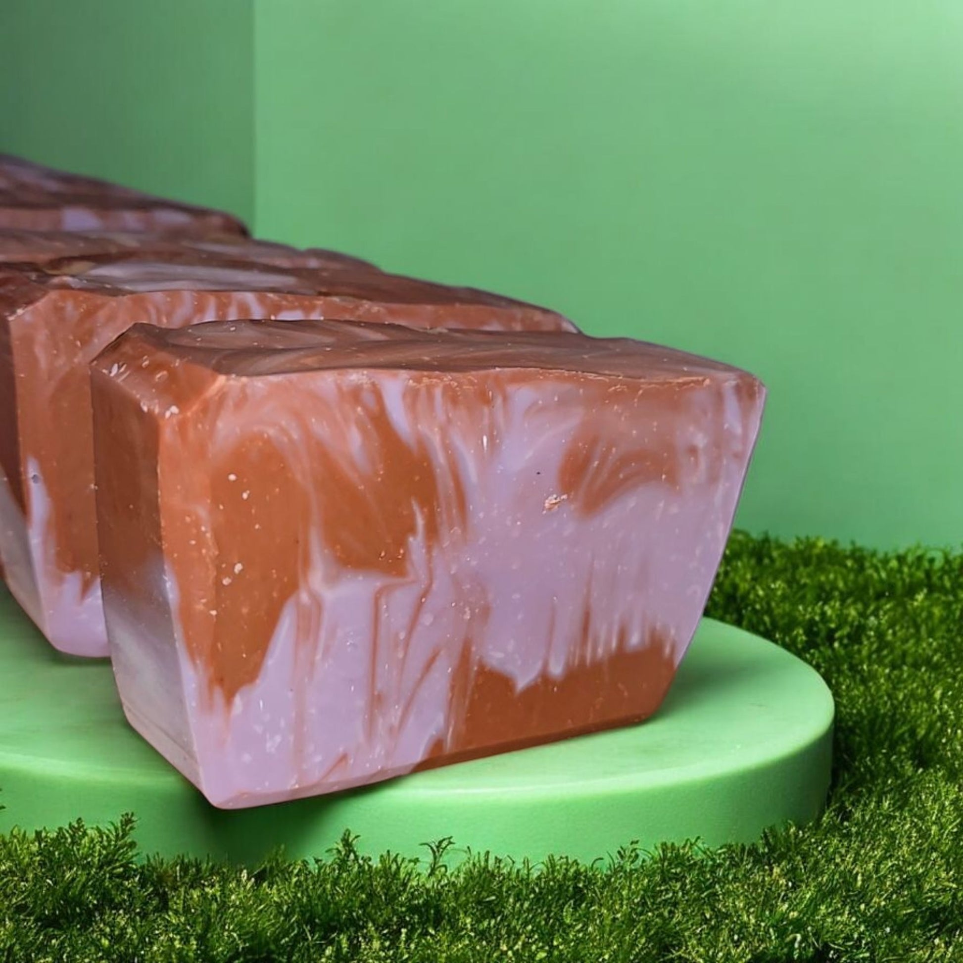 Ingredients: *olive oil, palm oil, *coconut oil, distilled water, sodium hydroxide, sodium lactate, castor oil, mica powder